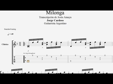 Milonga - Jorge Cardoso - Tablatura por Jesús Amaya... - Milonga Guitar Pdf - Jesús Amaya realizó la transcripción de esta genial composición que el maestro argentino Jorge Cardoso tituló: Milonga... Si desean el envío del material en ...